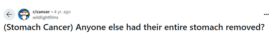 1.https://www.reddit.com/r/cancer/comments/xm25n1/anyone_have_a_total_gastrectomy/